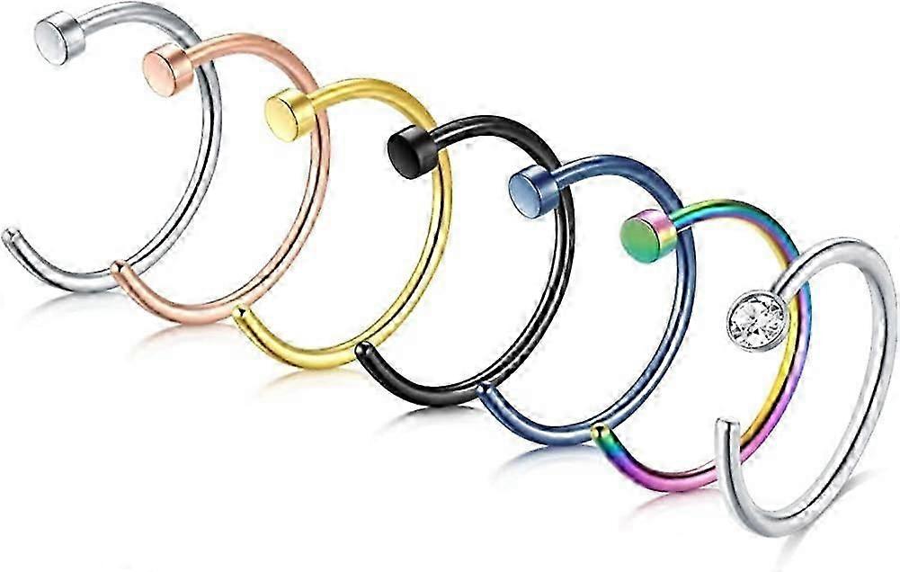 Nose Rings Hoop 7Pcs 18G 20G 22G Stainless Steel Nose Rings Piercing Ball Flat CZ Top
