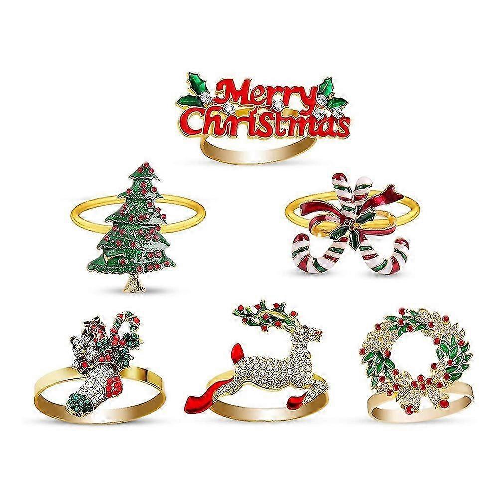Christmas Napkin Rings Of Set 6, Delicate Table Decors For Christmas Holiday Wedding Birthday Daily