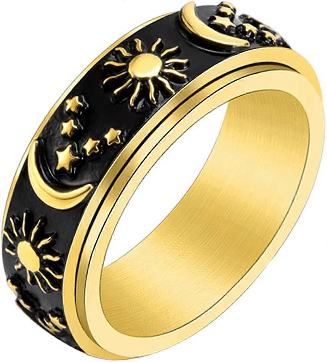 Stainless Steel Spinner Ring for Anxiety Fidget Rings for Relieving Stress Anxiety Ring Sun Moon Stars Promise Engagement Ring Size 6-12 - -