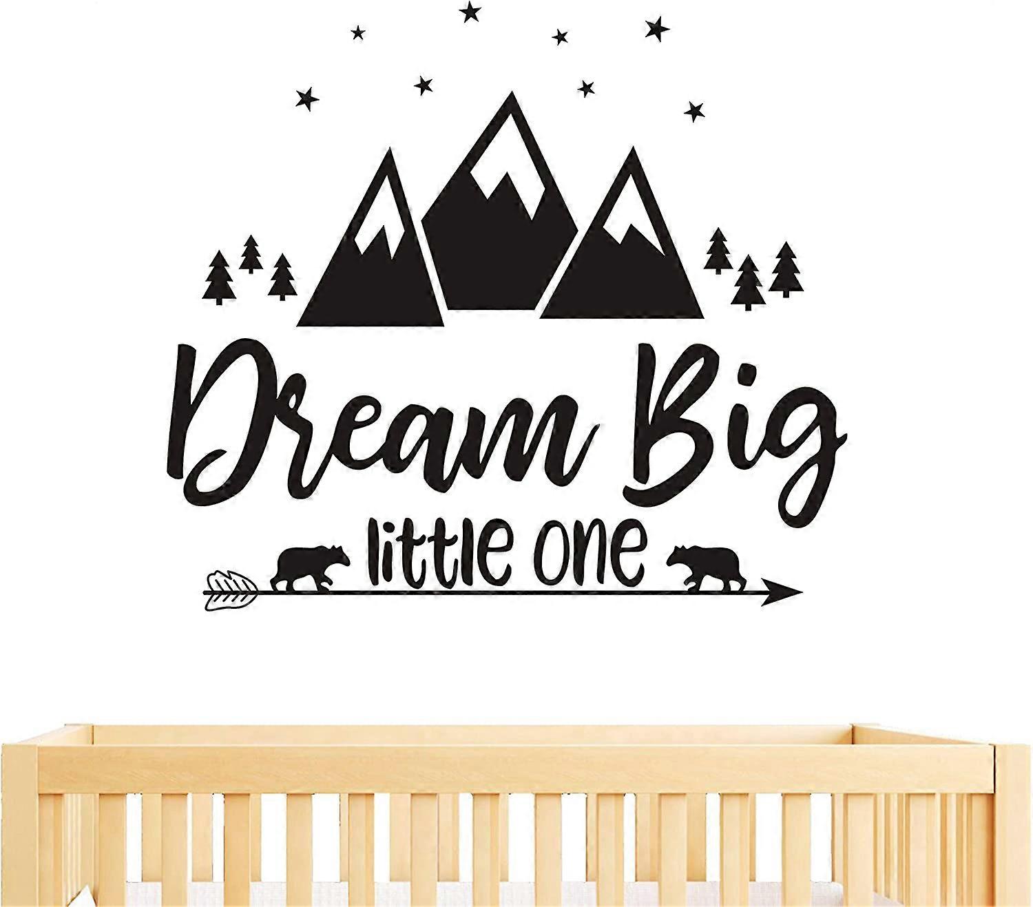 Dream Big Little One Quote Wall Decals, Nursery Wall Decals, Quote Decal, Woodland Wall Stickers, Vinyl Wall Decals for Children Baby Kids Boys Bedroo