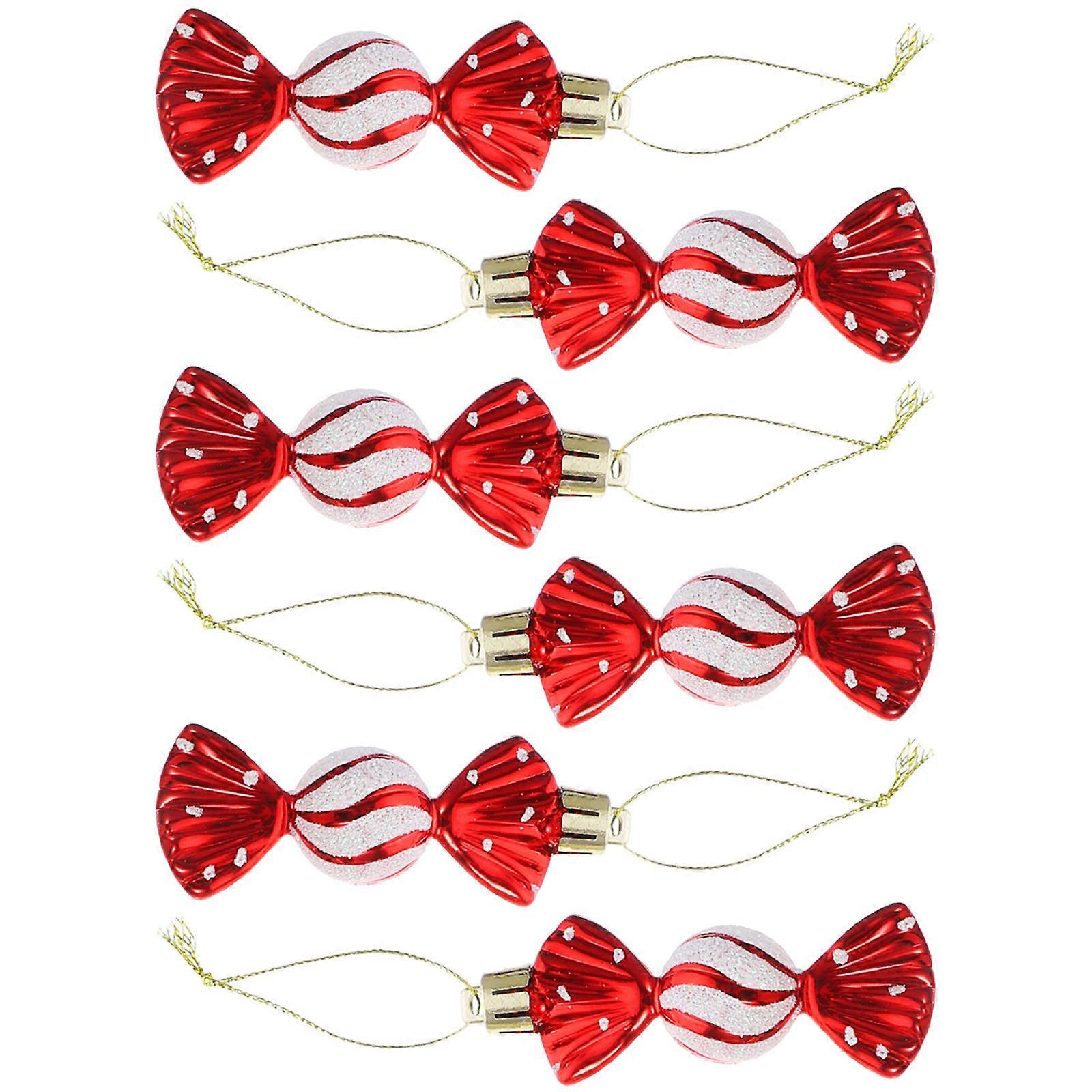 Candy Christmas Tree Hanging Ornament Decoration Plastic Red for Tabletop 6Set