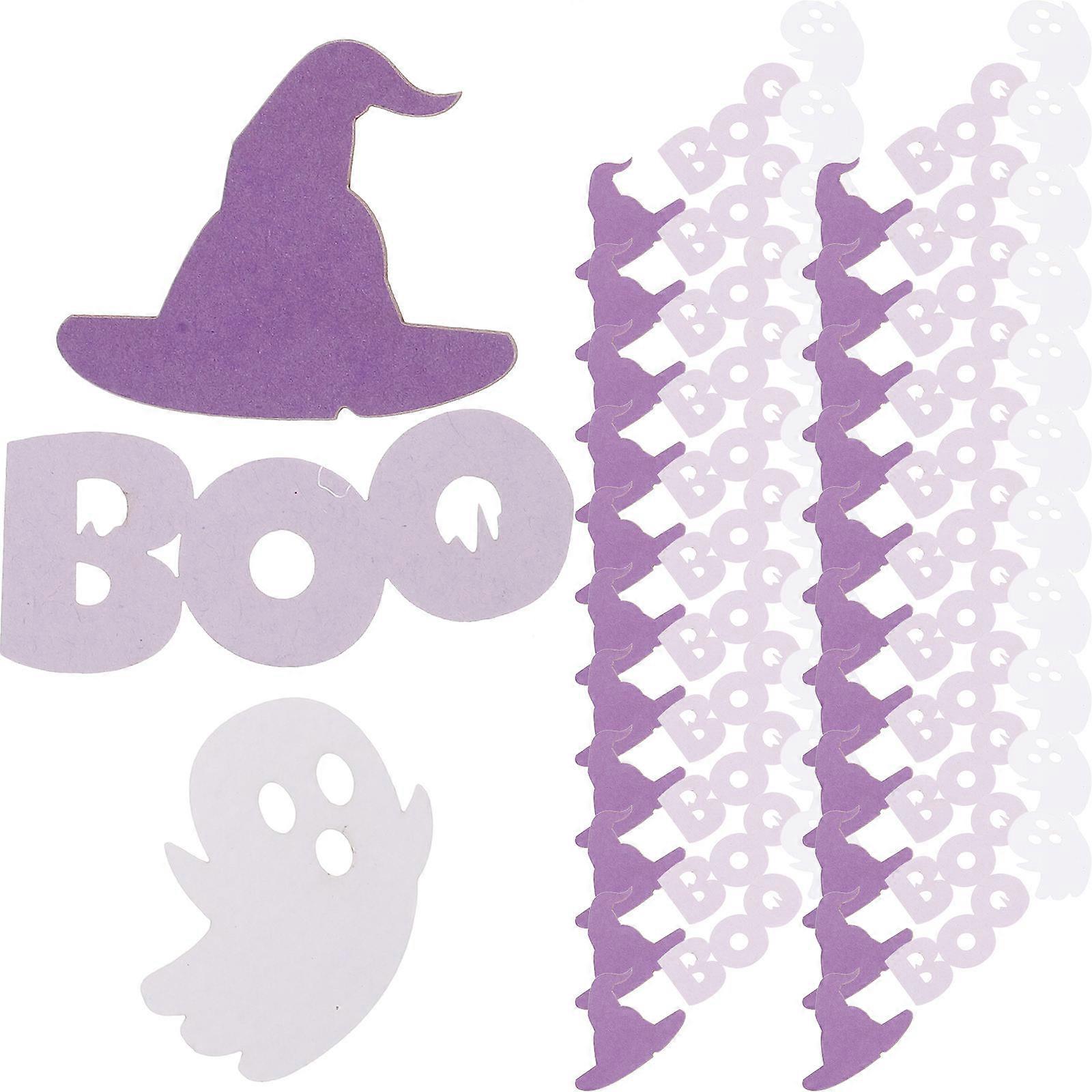 Halloween Party Table Confetti 100pcs Witch Hats & Ghosts Paper Scatter Decor, Purple Creepy Design for Festival Atmosphere, Lightweight & Safe