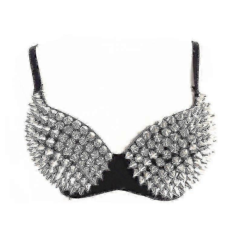 Women's Punk Rave Sports Bra with Studs & Rivets - Stylish Dance Top for Festival & Workout Fashion