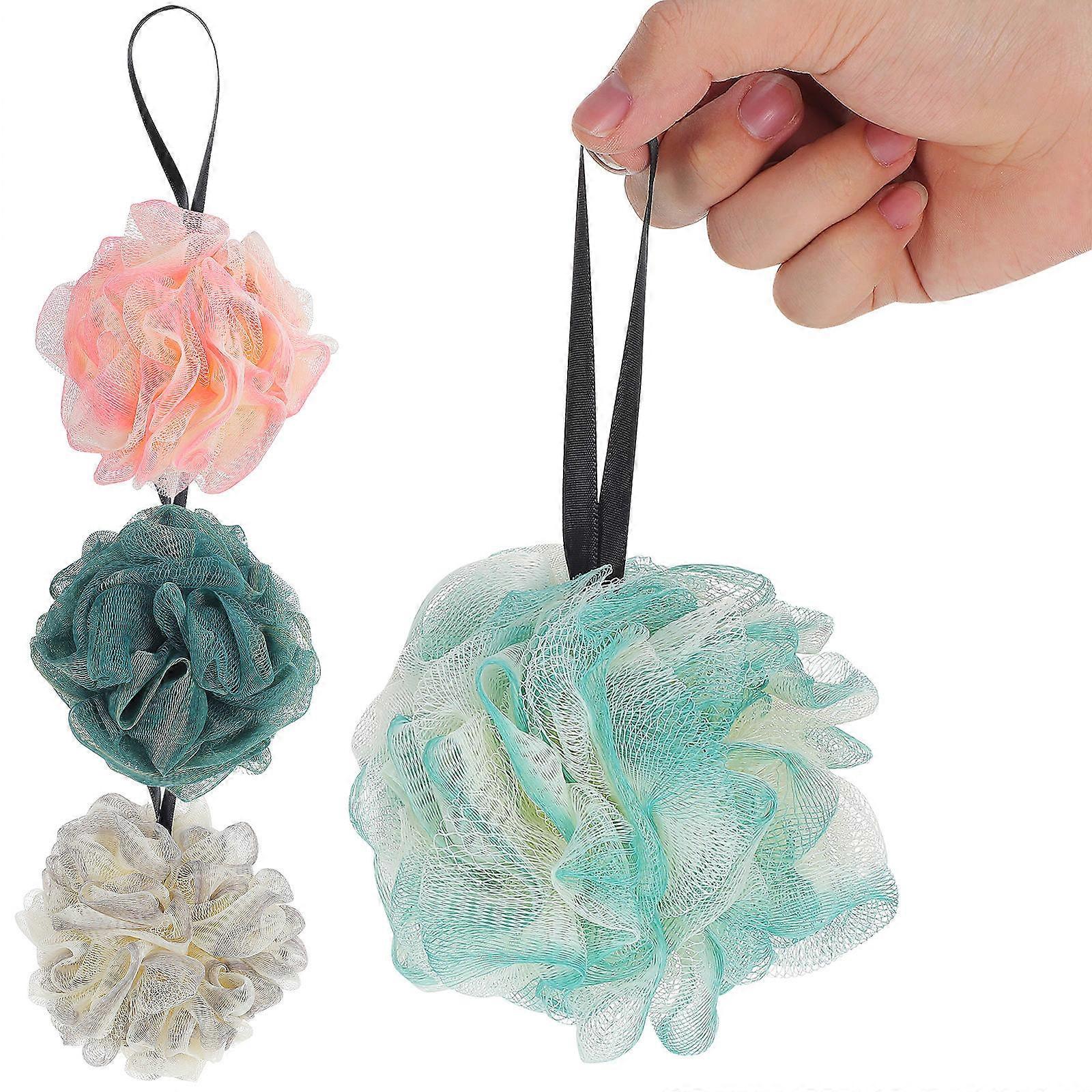 Bath Ball Shower Bathing Accessory Round Shape Beige Pink 4Pcs