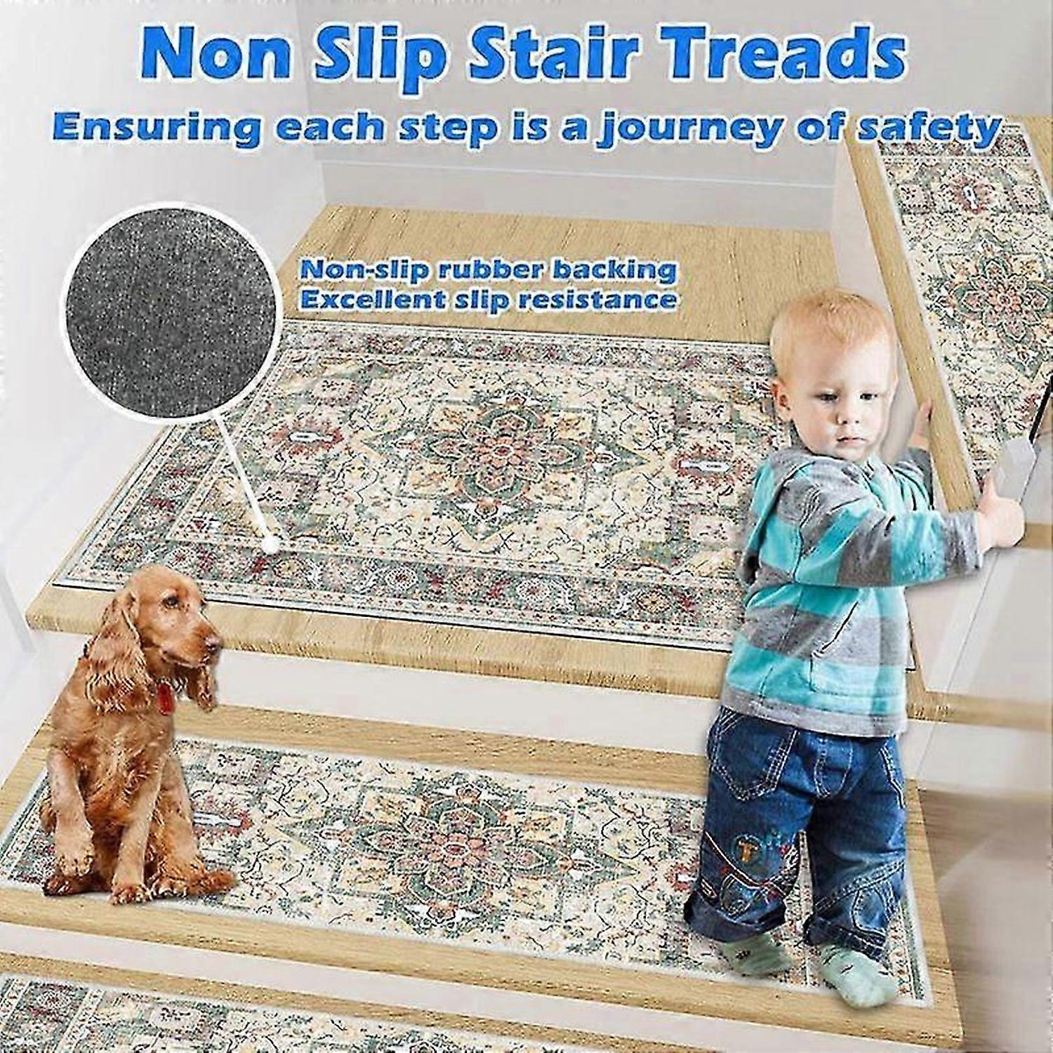 Edging Stair Treads Non-Slip Carpet Mat, 32in X 20in Indoor Stair Runners for Wooden Steps, Rubber Backing Stair Rugs