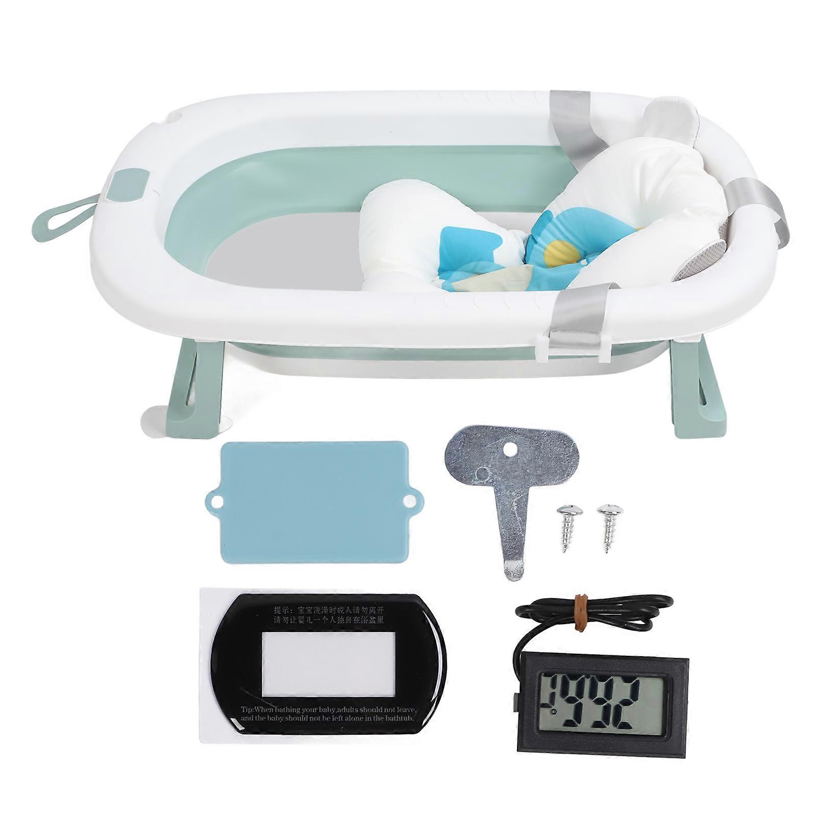 Collapsible Baby Bathtub Foldable Toddler Bath Cushioh Pad Lying Bathing Tub Home Use With Dinosaur Cushion T Shaped Mesh Green
