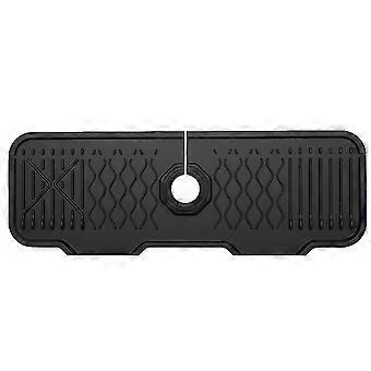 Improved Water Drainage: Our upgraded kitchen faucet splash guard mat features a 5° slope design that enhances water flow into the sink. The corrugated and dual drain outlets allow efficient water drainage. High-quality materials: Our faucet mat for kitchen sink are made of food-grade silicone, which is eco-friendly, , and to deformation and fading.providing long-lasting use. If you want to clean,simply wipe the mat with a damp cloth or rinse with water to remove any dirt or residue. It is also can dishwasher safe. Better Adaptable: Adaptable to multiple sizes. We improved the mounting hole, allowing it to be freely cut to fit faucets with diameters ranging from 1.2in to 2.1in. This ensures the faucet draining mat fits perfectly, providing a snug wrap around your faucet. Multifunctional Faucet Splash Guard: This silicone draining mat serves as a sink splash guard, kitchen soap sponge holder, and drying mat. The kitchen sink splash guard adds versatility to your kitchen accessories, making it a practical and efficient tool. Wide Range of Aplications: Perfect for kitchens, bathrooms, laundry rooms and RVs.Our faucet splash guard is 17 x 5.9inch. Please measure your faucet and sink size before purchasing to a . Color:Black Material:Silicone Package Contents: 1 * Kitchen Sink Splash Guard Only the above package content, other products are not included. Note: Light reflection and different displays may cause the color of the item in the picture a little different from the real thing. The measurement allowed error is +/- 1-3cm.