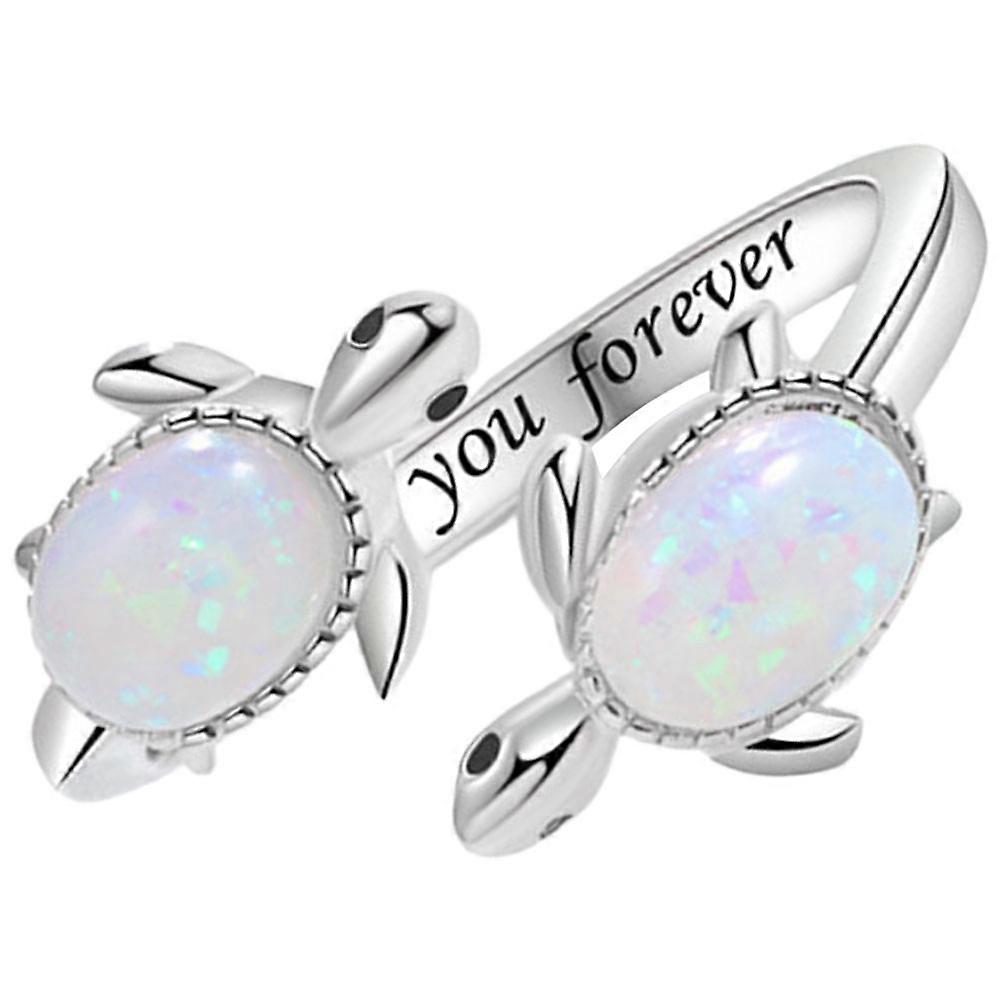 Adjustable Copper Ring with Artificial Opal for Women and Girls Silver Fashion Jewelry Size Adjustable