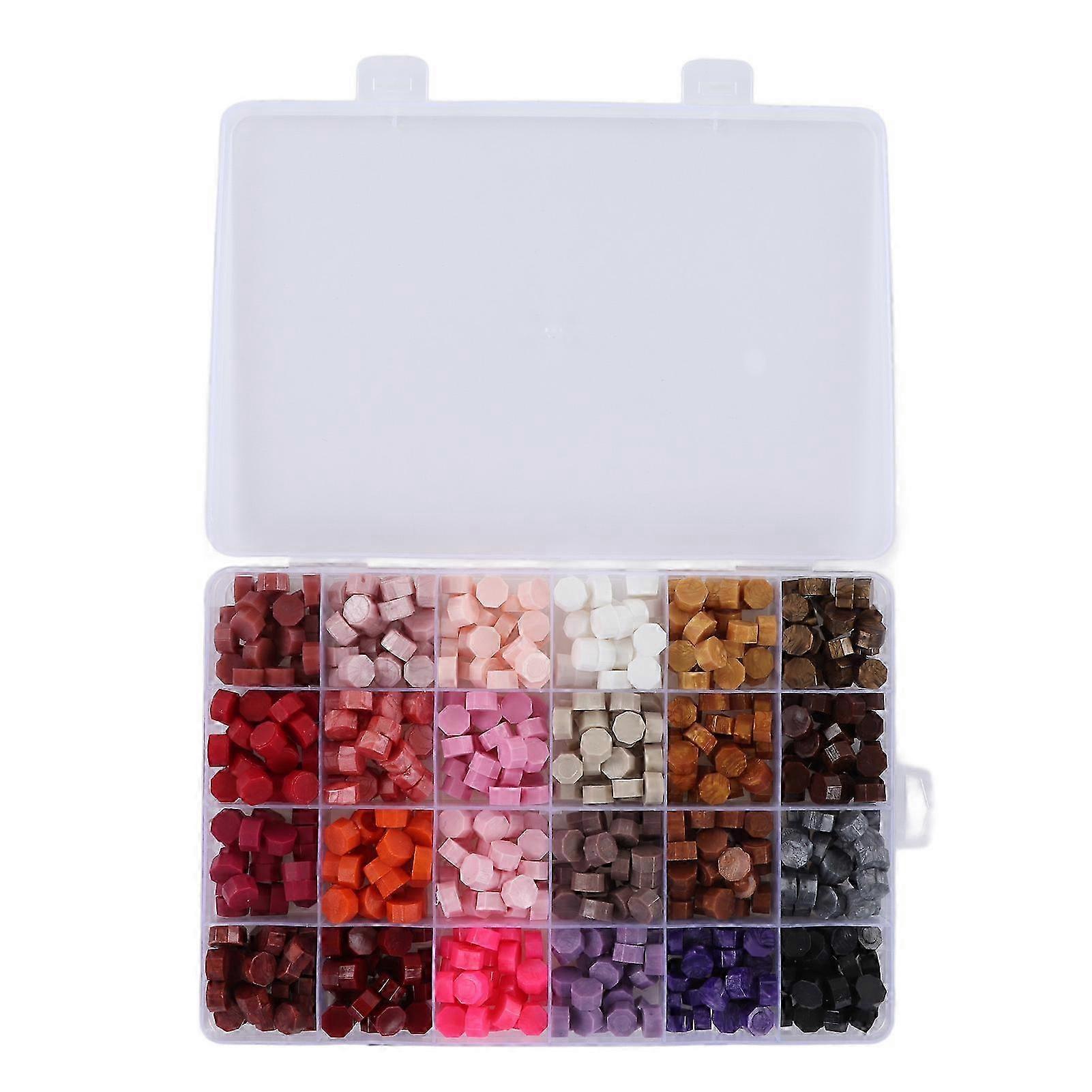 Sealing Wax Beads 24 Colors Octagonal Exquisite Craft Adhesive Wax Bead with Storage Box for Invitations Envelopes Type 1
