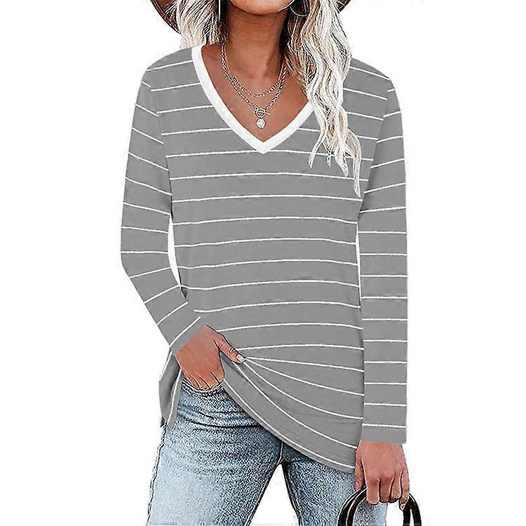 Fall New Long Sleeve V-Neck Striped T-Shirt Top Women's