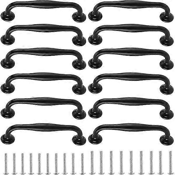 12-Pack Cabinet Handles Black, Vintage Drawer Pulls Long Dresser