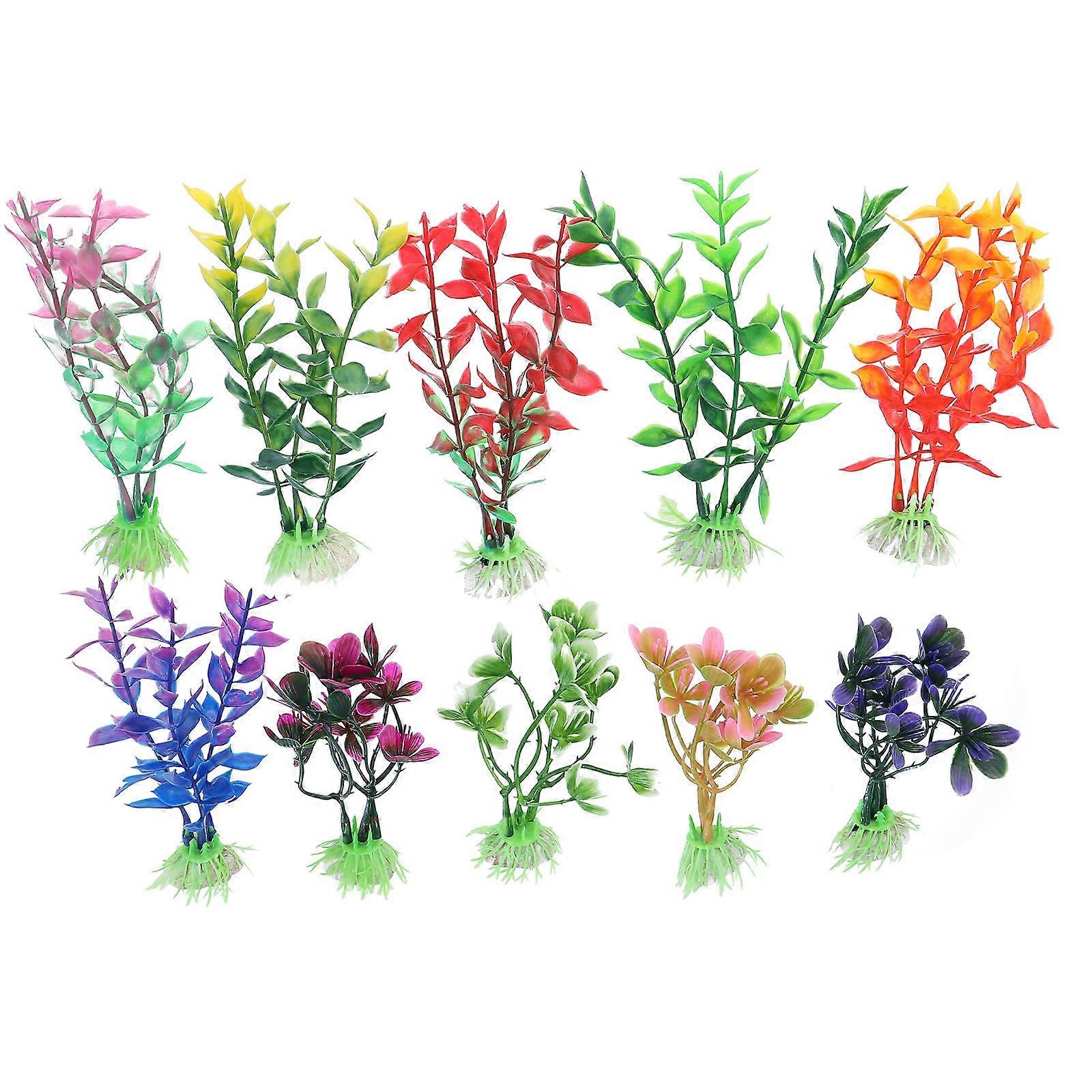 Fish Tank Decorative Plants Plastic Lifelike Decoration Mixed Style 3X2X13CM 10Pcs