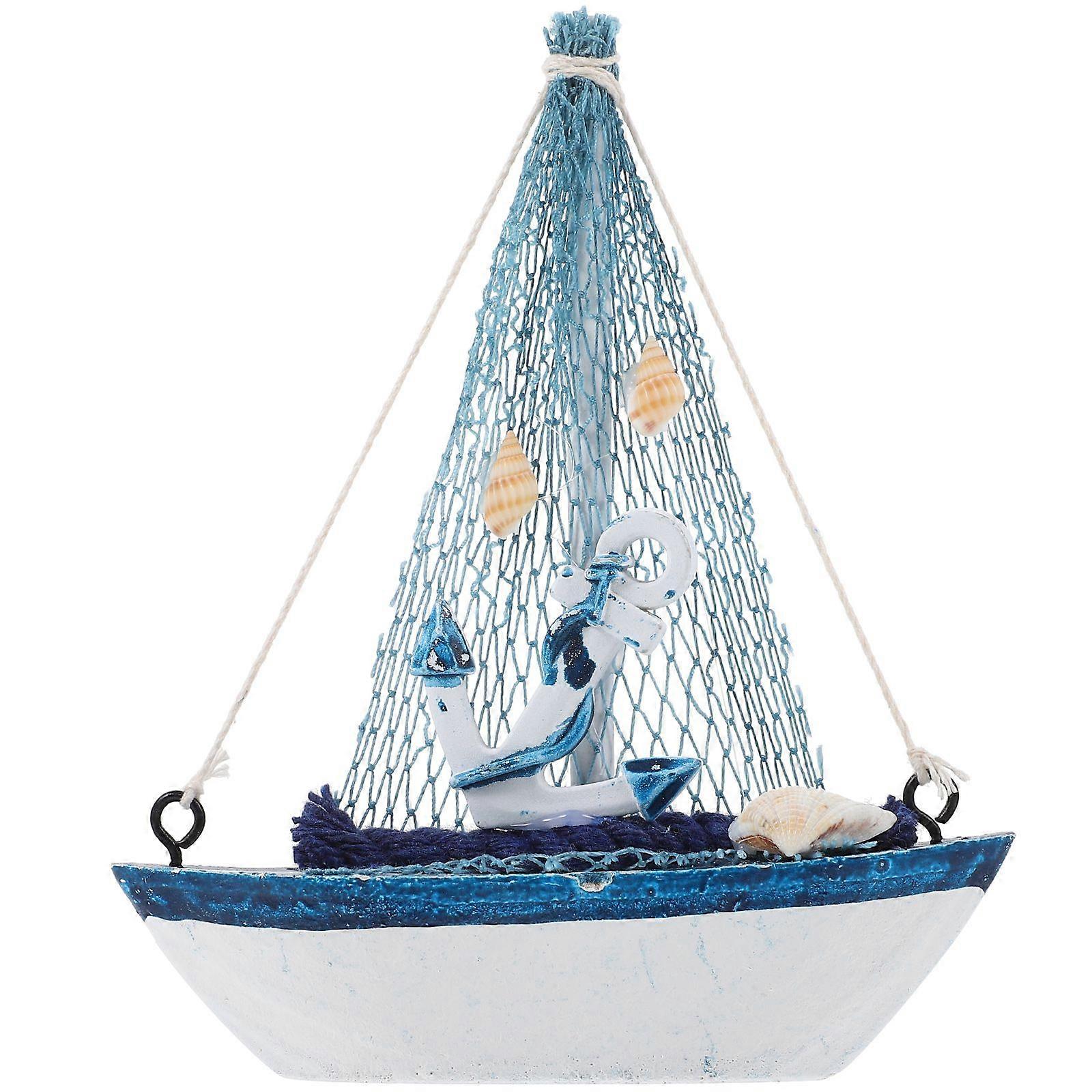 Wooden Sailboat Ornament Mediterranean Style Sailboat Model Wooden Craft Home Table Decoration