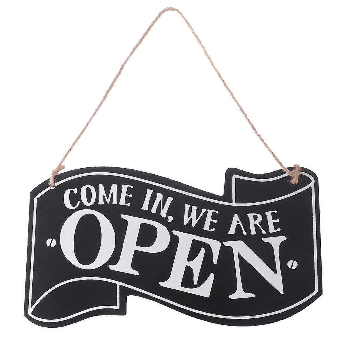 Wooden Open and Closed Two Sided Sign with Rope for Hanging Vintage Business Sign (Black)