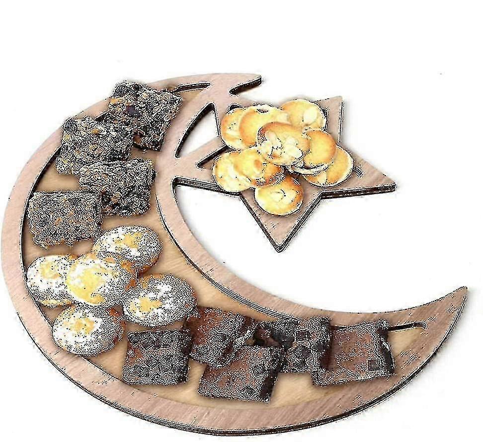 Wooden Ramadan Eid Mubarak Decoration Moon& Star Dinner Plate For Home