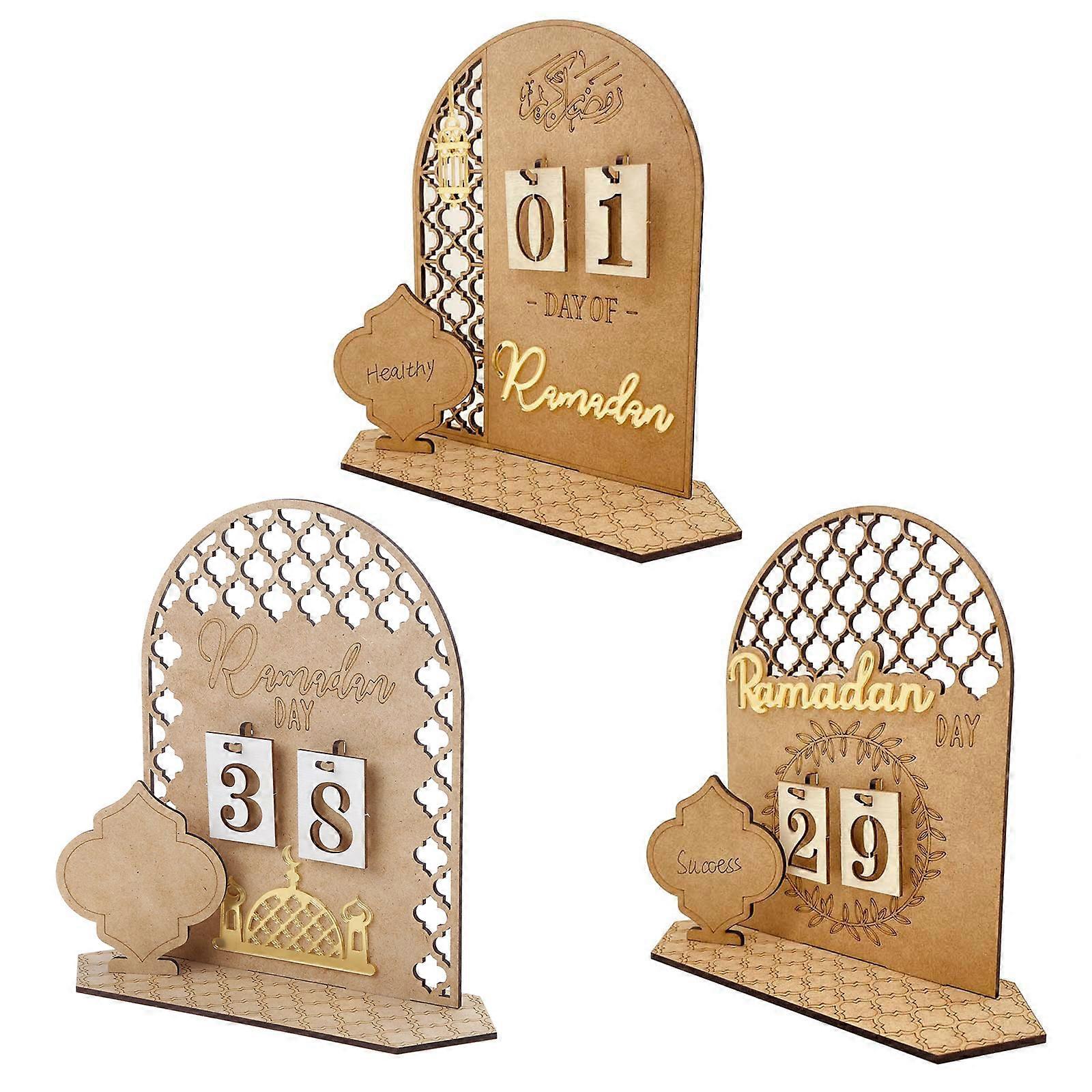 Wooden Eid Ramadan Countdown Calendar Ornament DIY Wood Crafts Decor for Home Muslim Party Bedroom Decoration Supplies