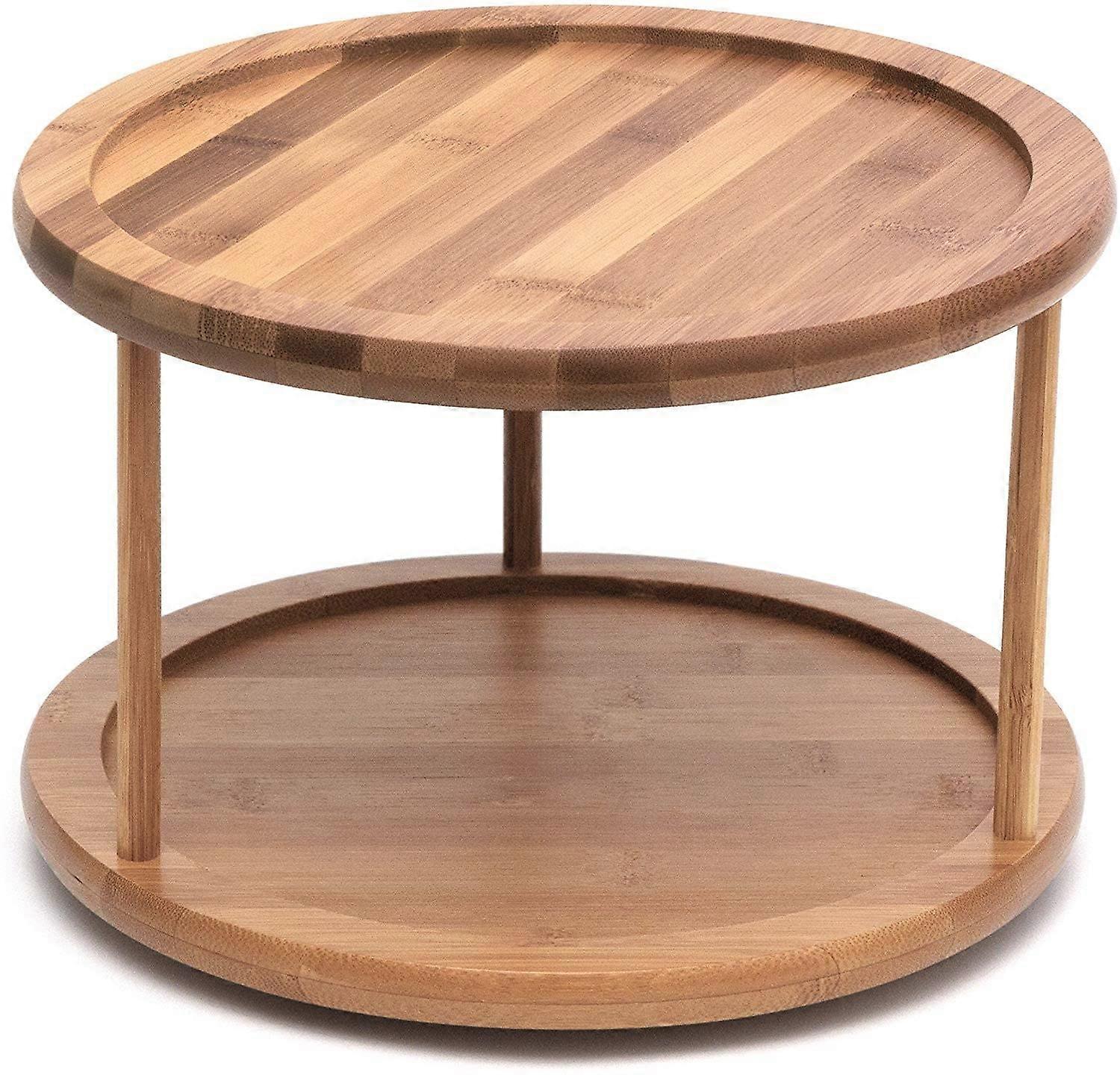 Bamboo Wood 2-Tier Kitchen Turntable for Spice Storage 10'