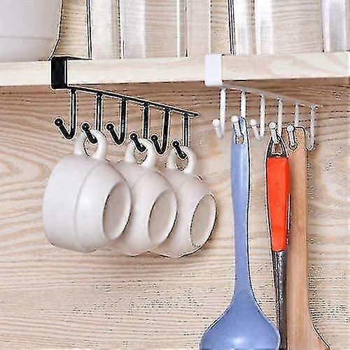 Hooks Rack, Multi-function 6 Hook Under Shelf Mugs Cups Wine Glasses Storage Drying Holder Rack, Cabinet Hanging Organizer Rack For Ties And Belts, 2