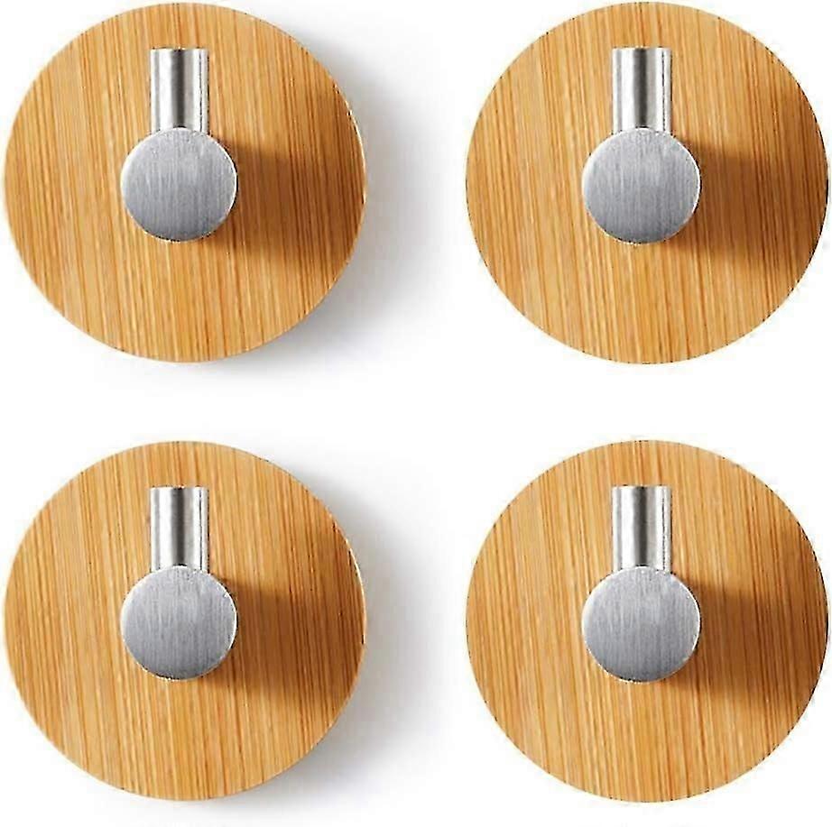 Wooden bamboo wall hooks, 4 pieces of self-adhesive hooks Adhesive hooks made of wood Stainless stee