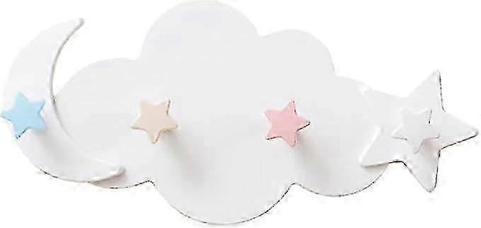 Pcs Star and Moon Coat Hooks, 4 Hooks for Children's Coat Rack, Plastic Wall Coat Rack No Drilling, Cloud Shape Wall Hooks, Suitable for Wardrobe