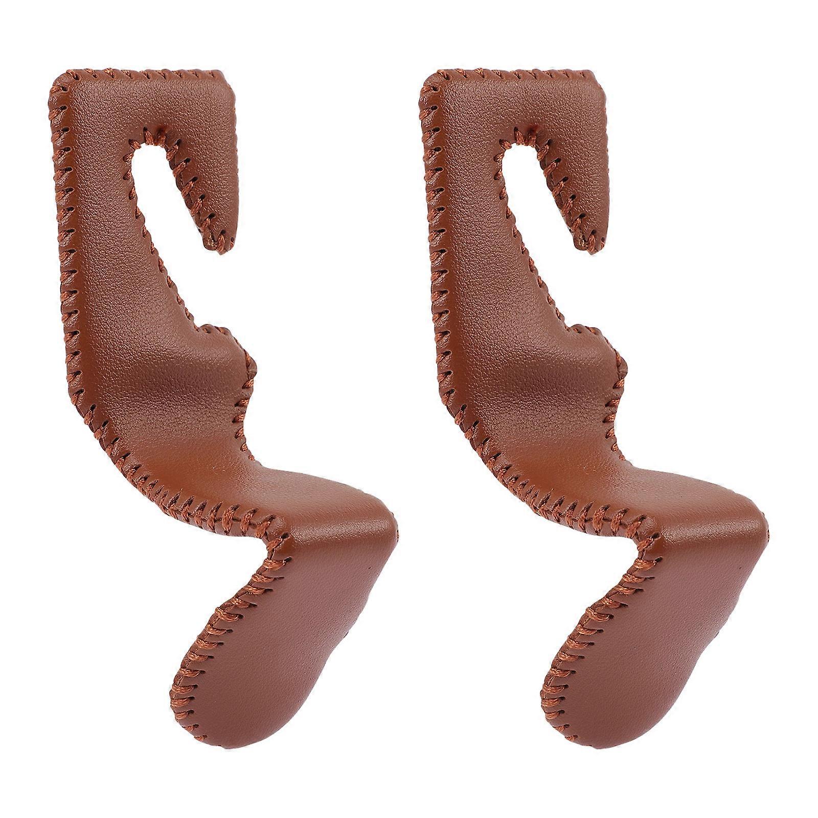 Multifunctional Hook For Back Seat Strong Bearing Car Use Curved Shape Leather Material Brown 2Pcs