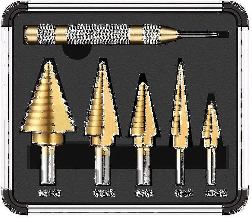 Step Drill Bit, 5pcs Titanium Drill Bit Set With Automatic Center Punch