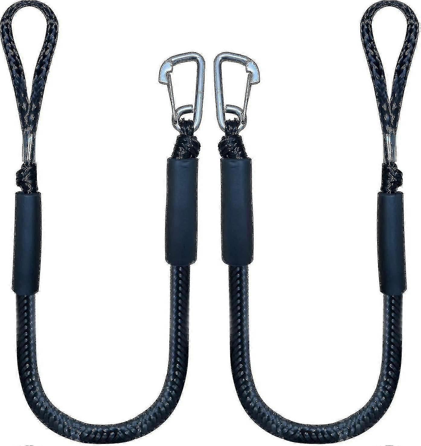 Bungee Dock Line With Hook , Black Mooring Rope Comptiable With Boat 4 Ft 2 Pack & Black