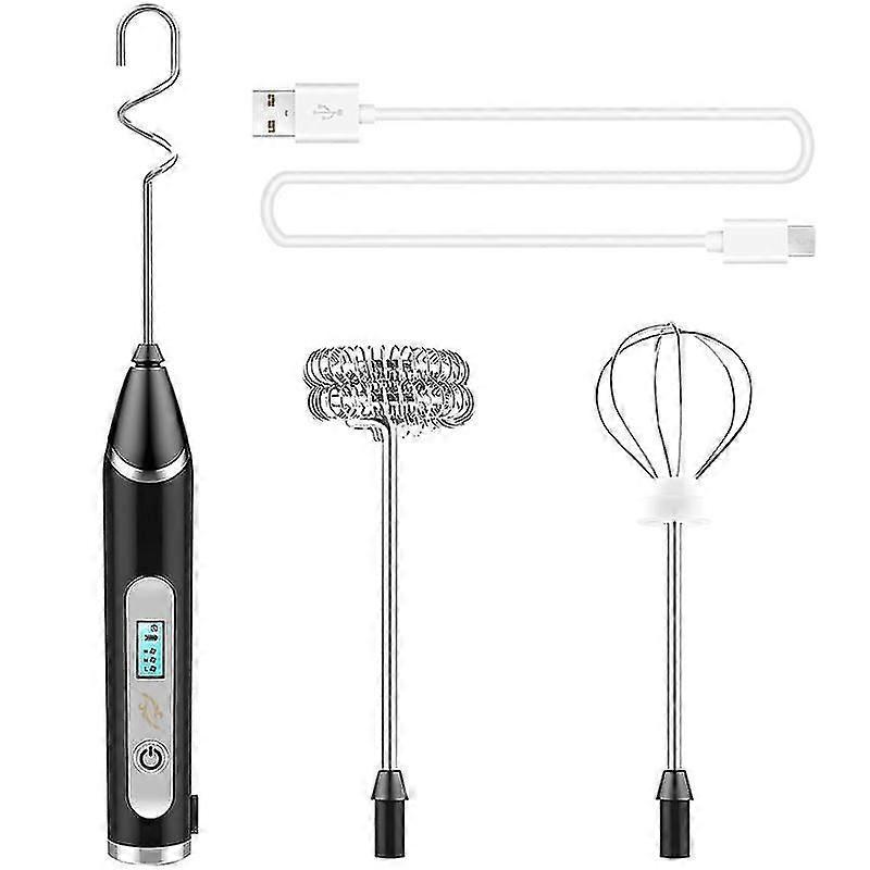 Milk Frother, Usb Rechargeable Lcd Hand Mixer With 3 Stainless Steel Whisk, 3 Speeds Handheld Froth
