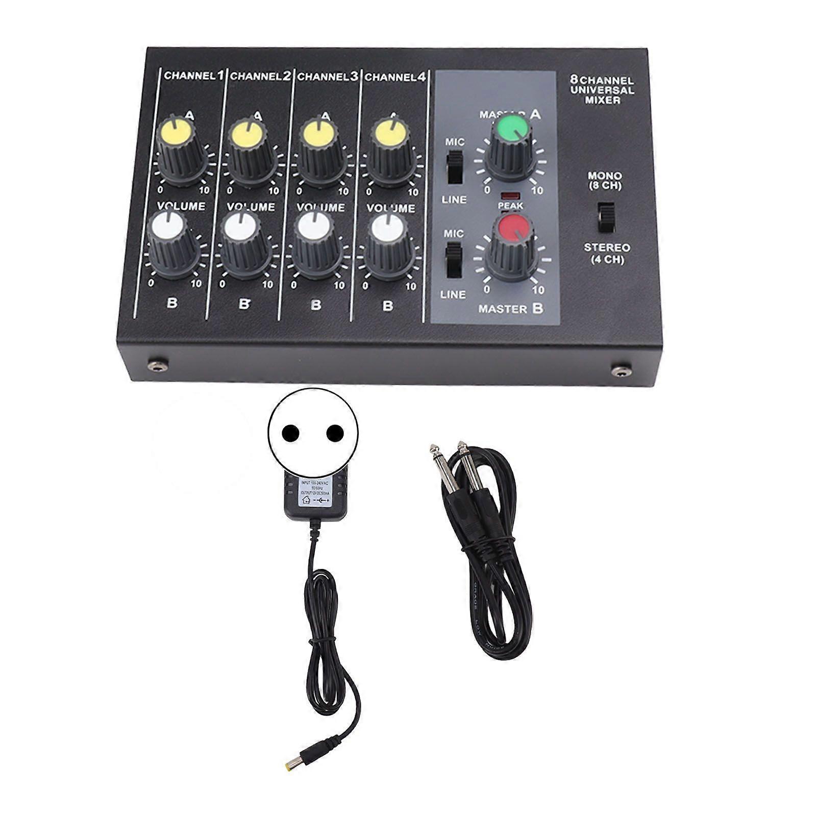 Mini Sound Mixer 8 In 2 Out 4 Channel Stereo and 8 Channel Mono Microphone Line Mixer for Studio Stage Small Clubs Bar