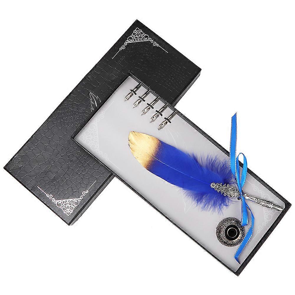 Vintage European Calligraphy Fountain Pen Feather Quill Dip Pen Set Stationery Gift (Blue)