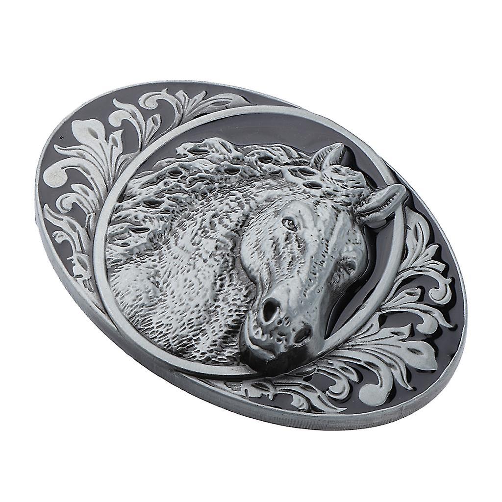 Vintage Men Animal Horse Head Oval Western Cowboy Hip Hop Alloy Belt Buckle