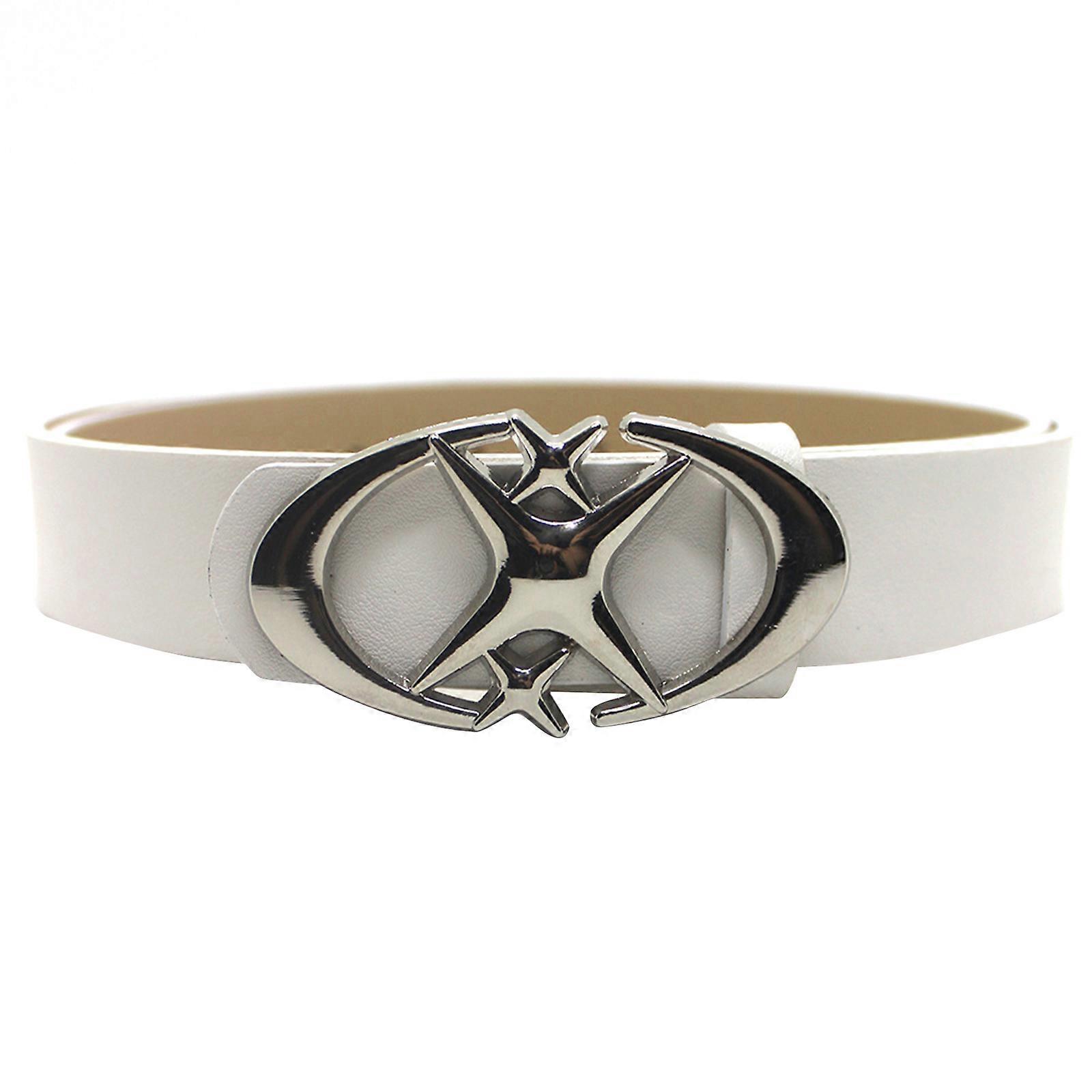 Vintage Gothic Punk Moon Star Buckle Belt for Men and Women Stylish Waistband for Jeans and Pants White