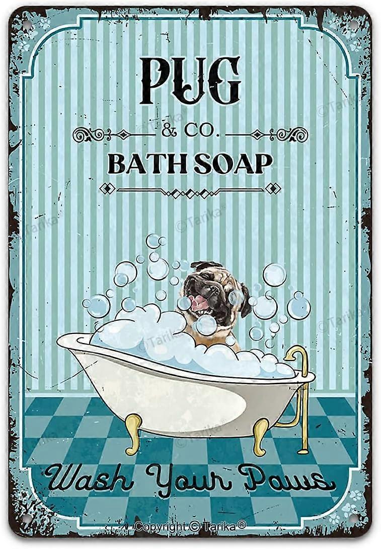 Vintage Dog Metal Tin Sign Pomeranian Co. Bath Soap Wash Your Paws Funny Lovely Dog Puppy Pet Art Printing Poster Bathroom Toilet Living Room Home Art