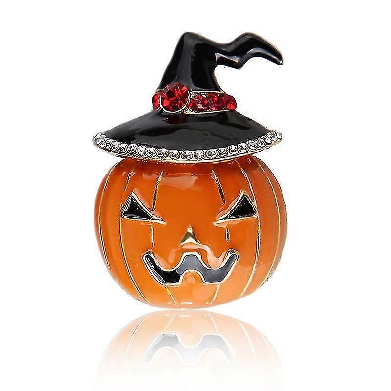 Vintage Enamel Crystal Pumpkin Hat Brooch Pin Halloween Lapel Pin Jewelry Gift