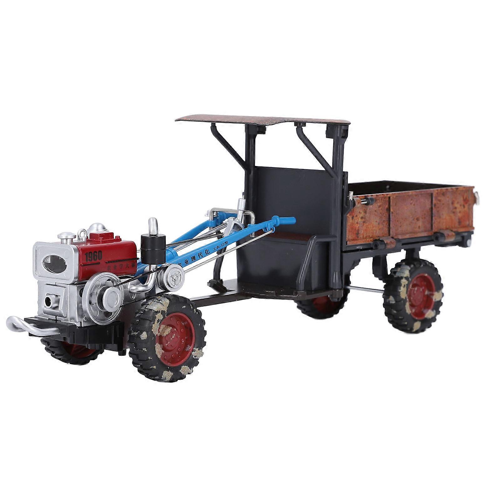Vintage Alloy Tractor Model with Light 4 Wheels Home Decor Lifelike Detailing Collectible Truck Trailer Toy
