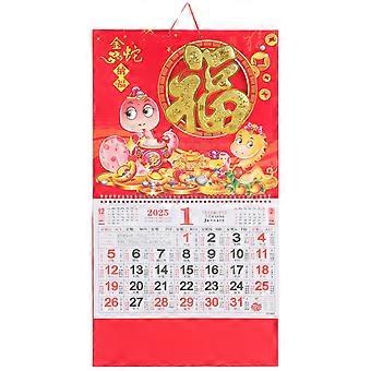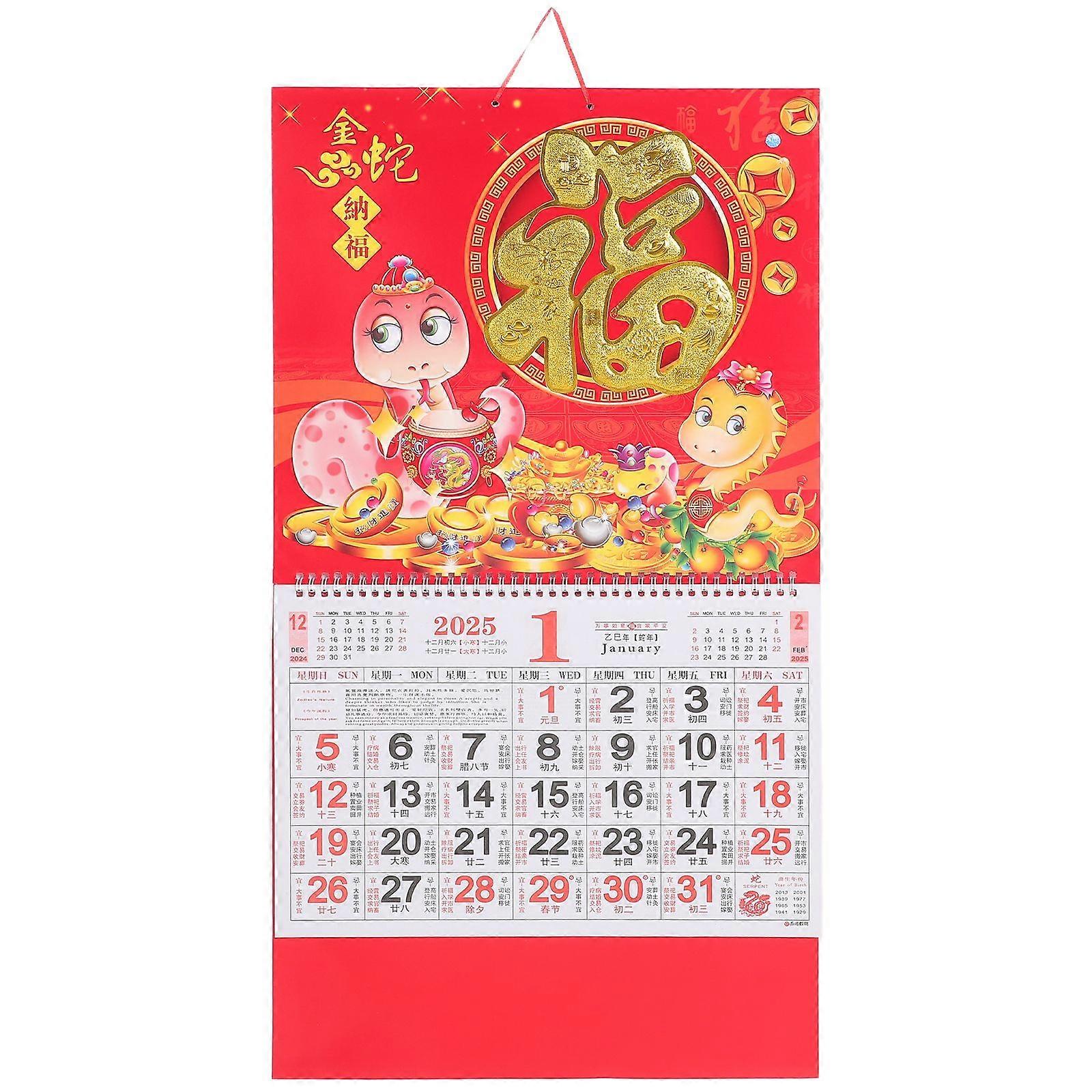 Vintage 2025 Chinese Lunar Calendar with International Holidays Hanging Calendar Year of Snake Wall Calendar New Year Chinese Fu Calendar