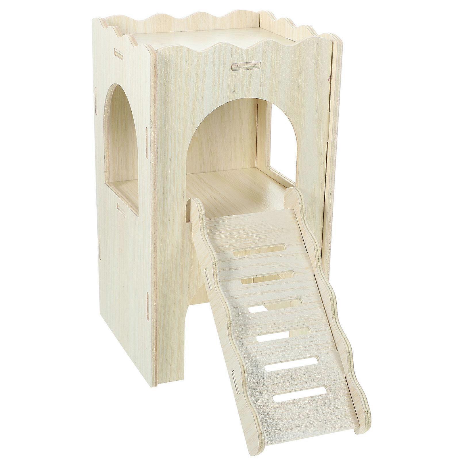 Guinea Pig Hideout House Hamster Ladder Hideaway Mall Animal Wooden Hut With Ramp