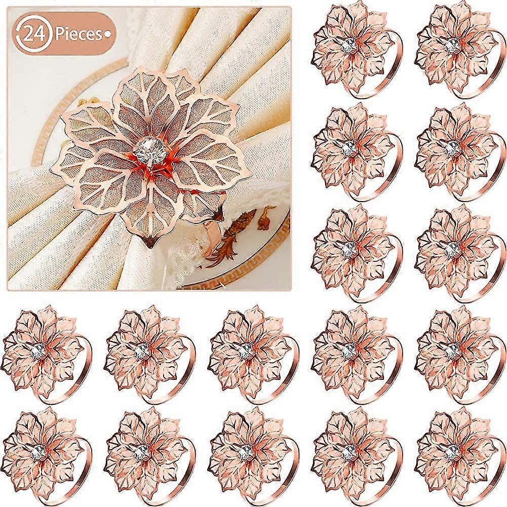 Napkin Rings,24 Pack Napkin Rings Alloy Hollow Out Flower Ring Napkin Holder