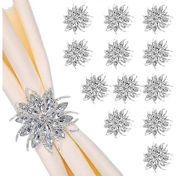 Silver napkin rings, set of 12, luxury rhinestone crystal flowers