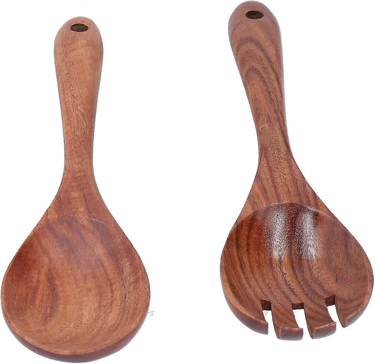 Wooden Salad Servers, Wood Salad Spoon Fork Serving Set Acacia Wood Salad Mixing Dinner Fork And Spoon Kitchen Cooking Cutlery Set(2pcs, Wood Co