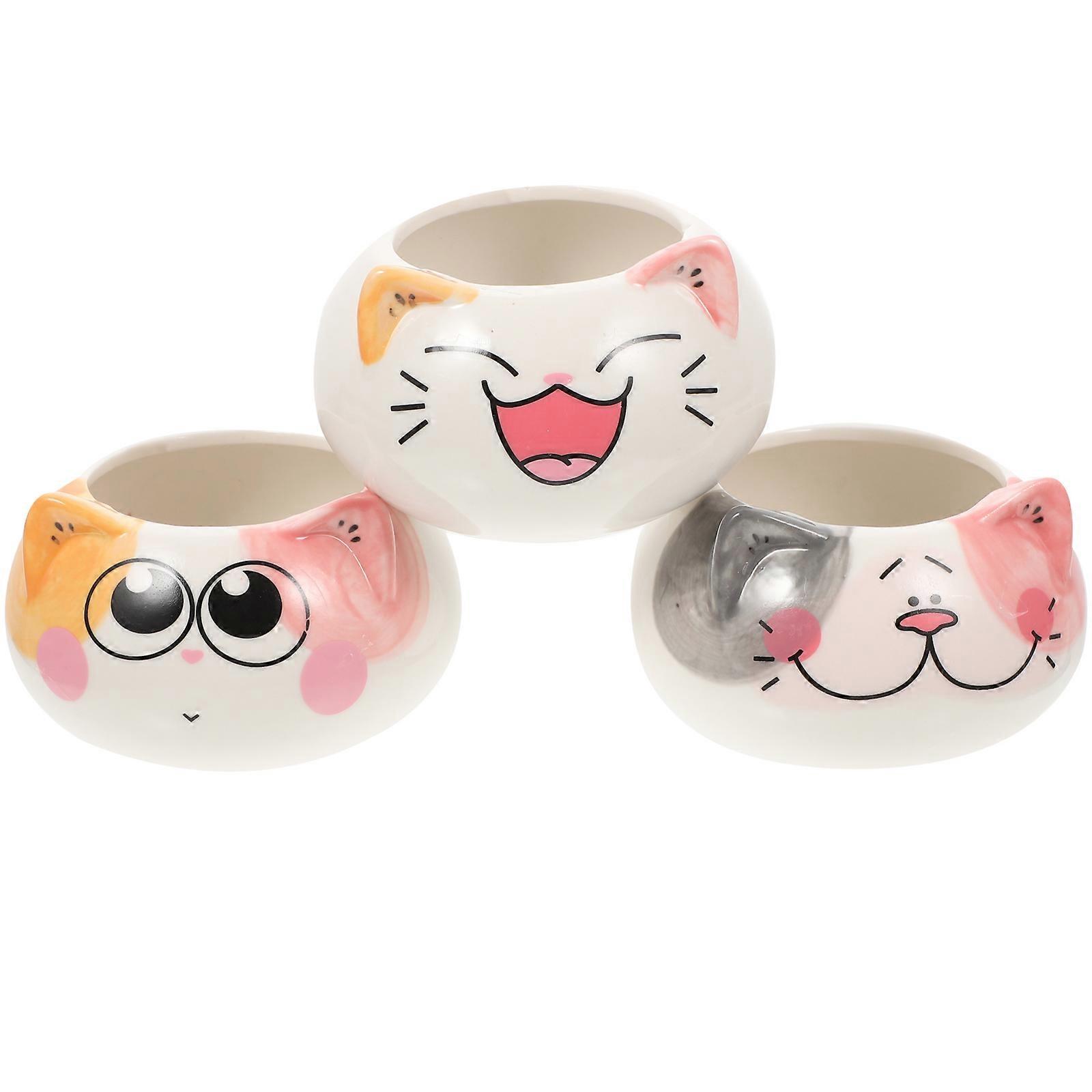 Indoor Flower Pot Ceramic Cat Flowerpot Office Decoration Assorted Color 9x9x5.8cm Air Holes for Aerobic 3Set