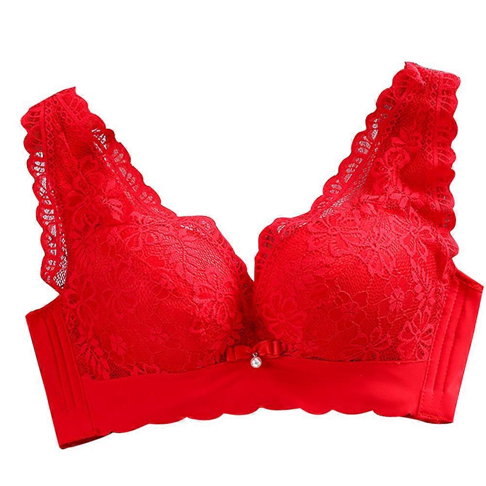 Lace Beauty Back Comfortable Bra Sexy Gathered Girl Seamless Underwear (Red40/90)