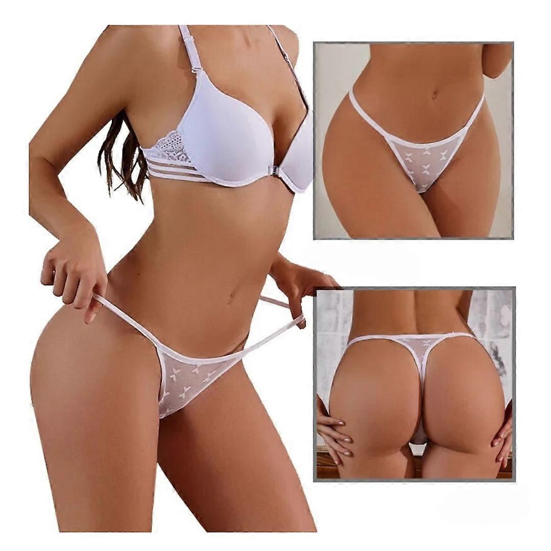 White Lace Tulle Thong Women See-through Sexy Tanga 38 M