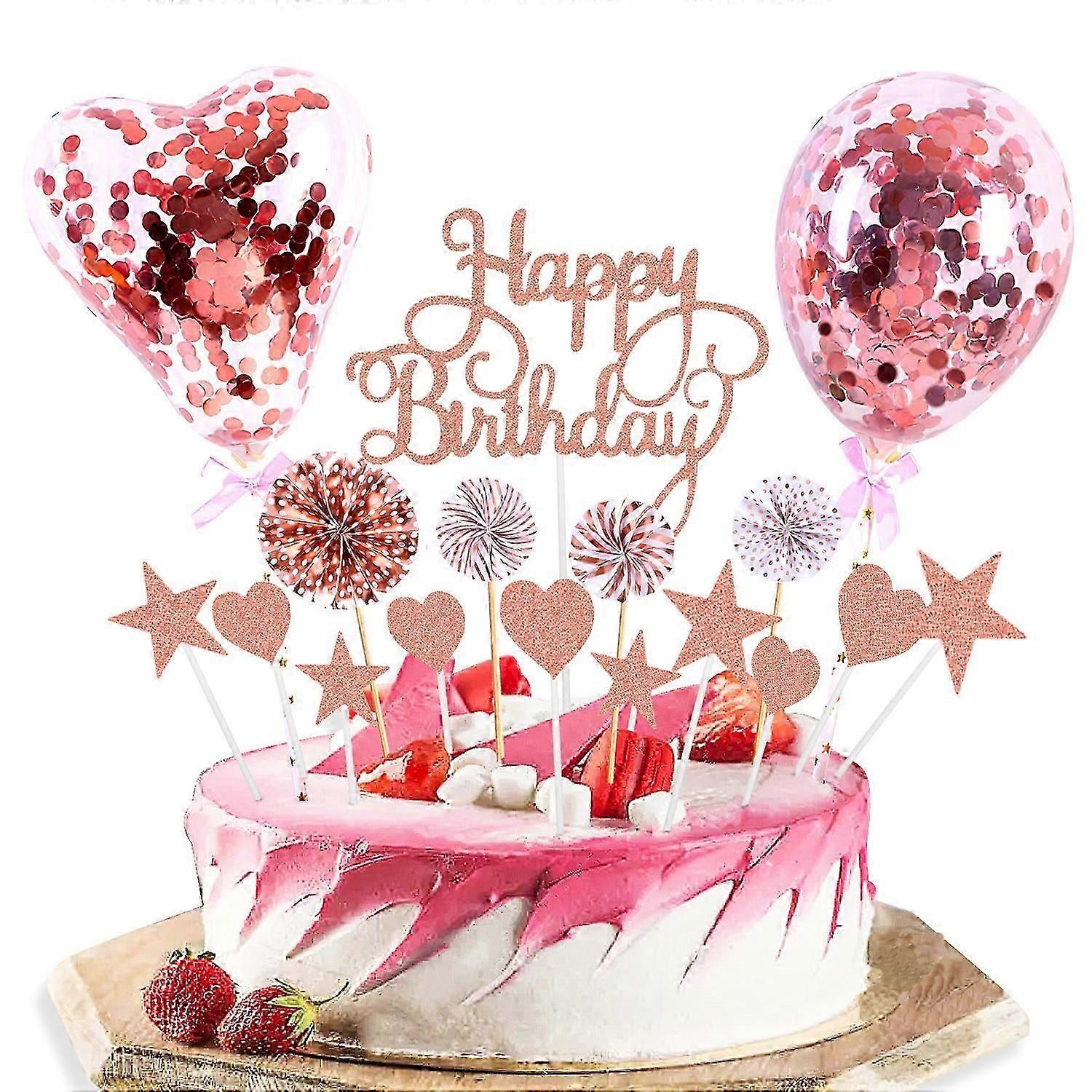 Made of glitter acrylic, latex, cards and paper, perfect cake decoration for pink theme birthday party. Could be used to decorate cakes, desserts, muffins, pastries, appetizers and biscuits. The food looks more delicious and the party is more warm and emotional. They are perfect for your birthday party, adding more joy to your birthday party and creating a very romantic atmosphere. Can be assembled in just a few minutes, perfect for Girl Kid Women birthday cake decoration