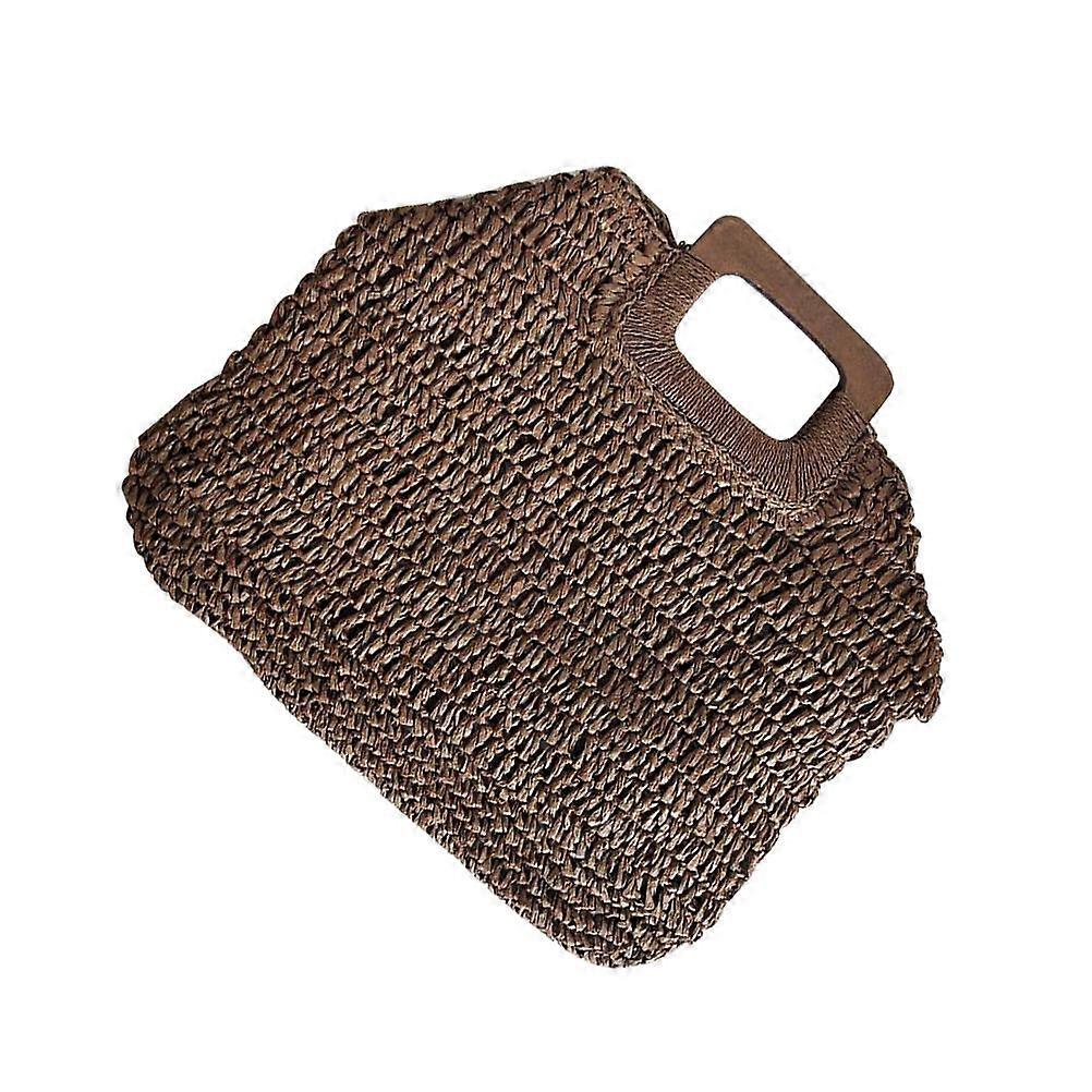 Durable Women Vintage Straw Handbag Summer Beach Bag for Travel with Wood Handle and