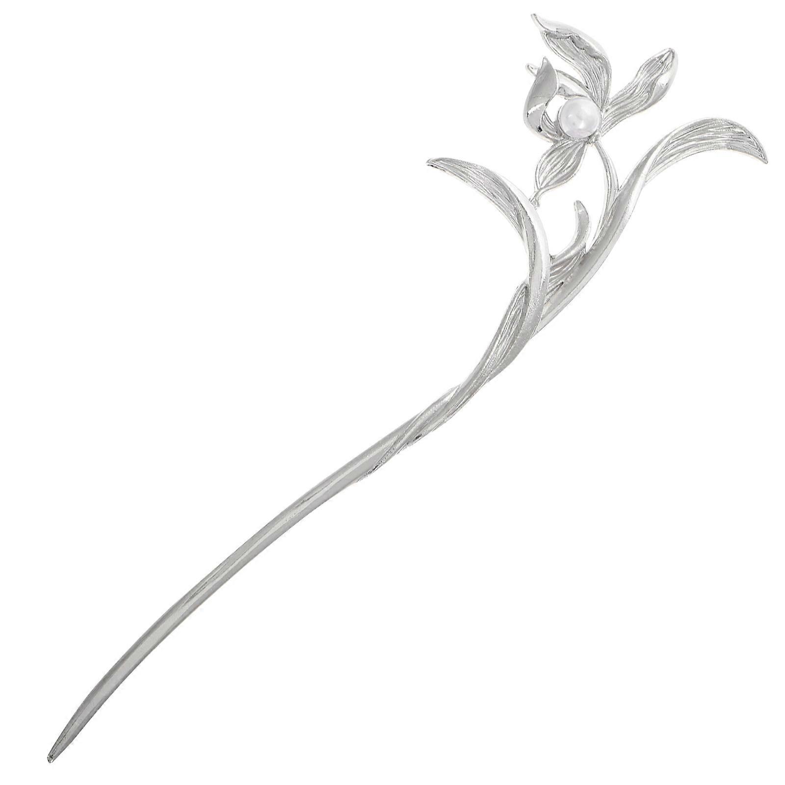 Silver Pearl Plum Blossom Metal Hair Pins for Women – Lightweight Chinese Style Hair Sticks for Buns & Ponytails, Elegant & Portable Daily Use