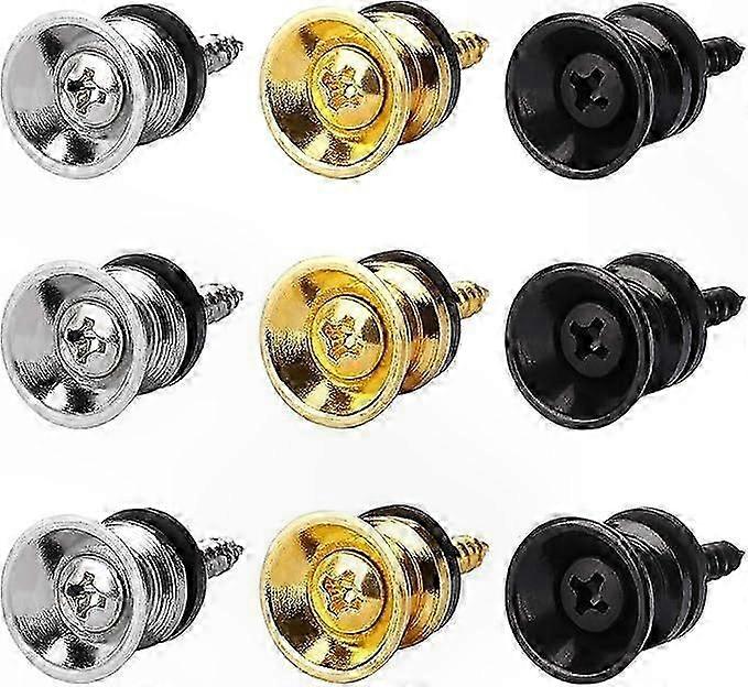 Metal Guitar Strap End Pins with Screws and Pads, 9-Pack (Gold, Silver, Black)