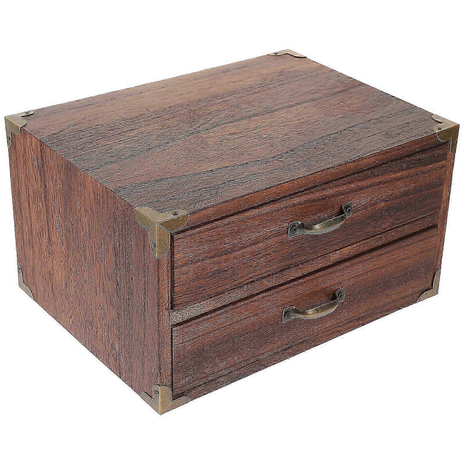 Drawer Style Storage Box Drawer Desktop Storage Case Vintage Wooden Box for Home (Two Drawers)