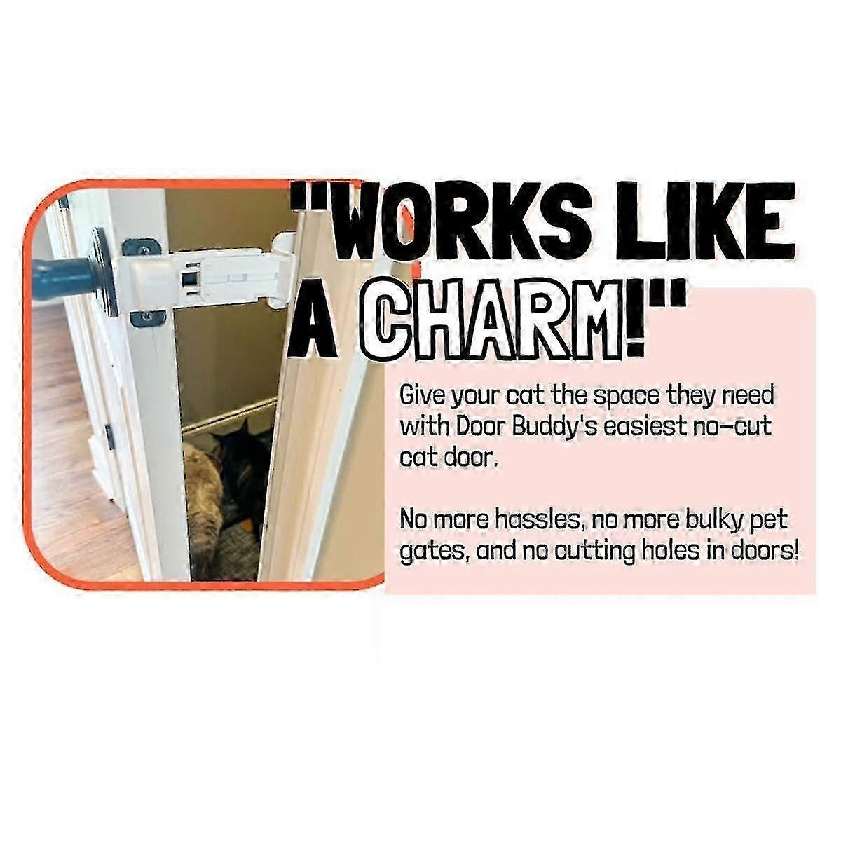 JUST LAUNCHED - Lets Cats In and Keeps Dogs Out - The Cat Door Prop is the easy, convenient, and secure way to keep door cracked open for cat to go in while also keeping it narrow enough to keep dog out of room (if slightly larger than cat). Effortless to Use - Simply turn the knob or handle from either side to open the door and enter the room. It can't get any easier than that. to manually latch and unlatch every time you enter the room. Relatching in the propped position is even easier... just push or pull the door closed until the Door Latch Holder automatically latches onto the door plunger. That is it! Simple Installation, Non-Permanent & Portable - Remove the existing strike plate from the door jam and replace it with the strike plate using existing screws. The Door Holder for Cats does not require any adhesives, cutting, or making new holes in your door, making it removable, reusable, and the perfect solution for renters and travelers alike. The result - a dog proof box in seconds. Adjustable Width -door latch holder allow you to adjust the width of the door opening to keep the door ajar between 2.5 - 5.5 inches so you can customize it to the exact sizes of your pets. Simply loosen the little screws, slide the two pieces to the desired width, and fully tighten the screws until it locks and no longer slides. Strong, & Pinch Free - Made from thick, high-quality materials making it strong and so it will stand up even to big and determined dogs. Finally, a pet, dog, cat door stopper where there is no "movement" when in the propped position which means no pinched fingers, , and no locked in or out of rooms. No Cut Cat Door - adjustable door latch lock is the best color: White Material: ABS Package Contents: 1 x Door Prop for Cats Only the above package content, other products are not included. Note: Light reflection and different displays may cause the color of the item in the picture a little different from the real thing. The measurement allowed error is +/- 1-3cm.