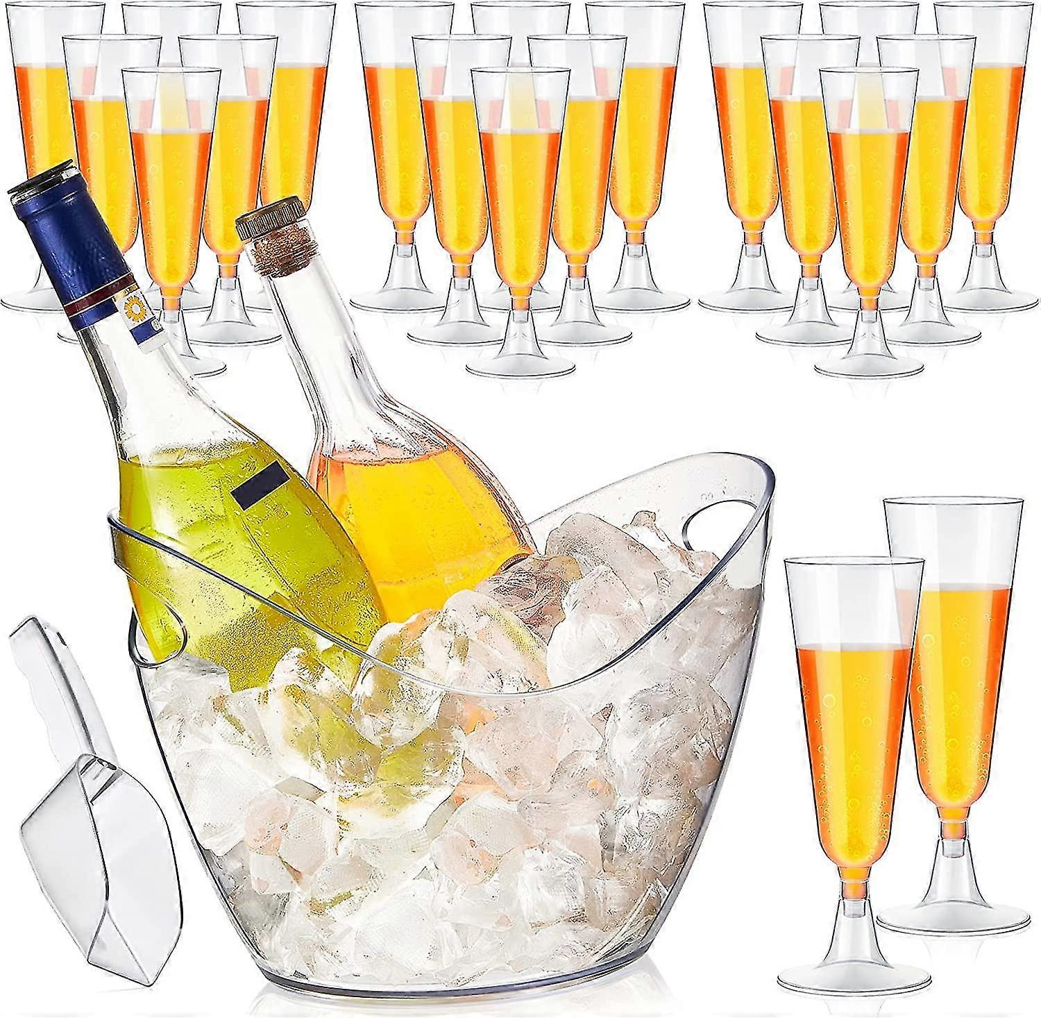 Ice Buckets For Parties 8 L And 24 Pieces Disposable Mimosa Glasses 5 Oz Plastic Champagne Flutes Drink Beverage Tub With Scoops Wine Cooler Bucket Fo